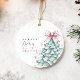 Feiern Sie die Ankunft Ihres kleinen Mädchens mit dieser charmanten, winterlichen Babydusche Fvor Tags. Dieses elegante Design mit einem aquamarinen Weihnachtsbaum und einem zarten, rosafarbenen Bogen, umgeben von pastellfarbenen Schneeflocken, verbindet festlichen Charme mit einer weichen, coquette Touch. Ideal für einen unvergesslichen Winter Babydusche mit einem skurrilen, aber raffinierten Gefühl.