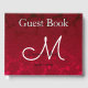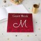 Weihnachts Winter Thema rote Hochzeit Empfang elegante benutzerdefinierte Gästebuch. Moderne, florale Monogrammmuster. Elegant, elegant, trendig, stilvoll, wunderschön und einzigartig. Bildrecht Marg Seregelyi Fotografie.