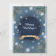 Ein dekoratives Wintergrusskartendesign mit Schneeflocken, blauen Tönen und goldenen Akzenten. Kiefernäste umrahmen das leere Zentrum und bieten Raum für individuelle Nachrichten oder Feiertagsgruß.