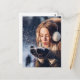Weihnachts-Wintermädchen bläst in ihrer Hand Schne Postkarte