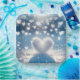 Ein großes, schneegedecktes Herz liegt mitten in einer Kaskade von kleineren, glitzernden Schneeflocken.