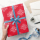 Geschenkpapier für Feiertage in roter Hintergrundfarbe mit einem festlichen Schneeflottprint. Matte Papier gezeigt Anpassen Sie dieses Papier oder kaufen, wie es ist.