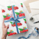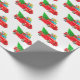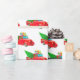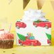 Umschlagpapier in einem festlichen Weihnachtsfeiertag rot LKW und Geschenke mit Baumdruck gezeigt. Matte Papier angezeigt. Passen Sie dieses Objekt an oder kaufen Sie, wie es ist. Bild