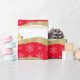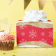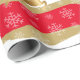 Das Wrapping-Papier wird in großen, fetten, runden Linien in Rot, Weiß und mattem Gold mit matten goldenen Rentieren und weißen Schneeflocken über Streifen gezeigt. Matte Papier angezeigt. Farbe: Rot, Weiß und Matte Gold. Passen Sie dieses Objekt an oder kaufen Sie, wie es ist.