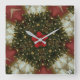Weihnachts-Wreath-Green-Gold mit Red Star Quadratische Wanduhr