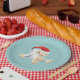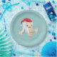 Weihnachts-Yeti-Puppe Eine Weihnachtsmannmütze tra Pappteller
