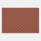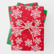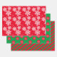 Wunderschönes Weihnachtspapier, drei verschiedene Designs, die weiße Schneeflocke auf rotem Hintergrund, rot-grün gestreiftes Design, roter Punkt auf grünem Hintergrund mit einer personalisierten Botschaft.