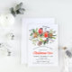 Dieses elegante Urlaubsdesign besticht durch Aquarellvögel auf festlichem Laub von Nadelkronen, Heiligen, Mistelen und vielem mehr. Passen Sie Ihre Dinner-Details an die Mitte an, die mit "Christmas Eve" in schicken roten Kalligraphie-Skripten verziert sind. Auf der Rückseite der Einladungen steht ein solides Grün #christmas #holidays #holidays #seasonal #invluve #bullfinch #floral #Blume #pine #cones #mistletoe #holly #white #white #green #chic #birds #nature #elegante #watercolor #stationery #festive #fesry #christmaseve #dinner #blossoms #blossoms #berries #berries #