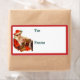 Vintage Dame in einem Santa Anzug strickt zu Weihnachten einen Strumpf