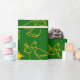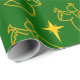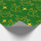 Dieses Packpapier hat ein Weihnachtsdesign von Engeln und Sternen verstreut über das Design auf einem grünen Hintergrund.