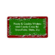 Adressetikett - Weiße Schrift vor grünem Hintergrund. Es ist durch eine rote Grenze mit weißem Filigree gerahmt. Koordiniert mit "Frohe Weihnachten" Porto, Aufklebern und Weihnachtskarte.
