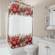 Der hübsche Weihnachtsduschvorhang hat eine passende Badmatte. Die Gartenanlage besteht aus hellen roten Äpfeln, Kiefernhäuten, heiligen Blätter und roten Beeren.