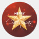 Weihnachts-Weihnachtsaufkleber wird in einem festlichen Goldsterndruck mit Gruß gezeigt. Es wird ein Aufkleber in geringer Größe angezeigt.