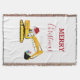 Eine niedliche Abbildung eines gelben Spielzeuggrabens mit einer Weihnachtsmannmütze und in Weihnachtsbeleuchtung dekoriert, der Weihnachtsgeschenke mit den Worten "Frohe Weihnachten" ausgräbt. Ideal für Baulaster jeden Alters. Eine ideale Weihnachtsdecke für Groß oder Klein, Mädchen oder Jungen.