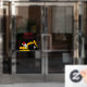 Eine niedliche Abbildung eines gelben Spielzeuggrabens mit einer Weihnachtsmannmütze und in Weihnachtsbeleuchtung dekoriert, der Weihnachtsgeschenke mit den Worten "Frohe Weihnachten" ausgräbt. Ideal für Baulaster jeden Alters. Ideale Weihnachtsdekoration für Groß oder Klein, Mädchen oder Jungen.