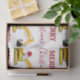 Eine niedliche Abbildung eines gelben Spielzeuggrabens mit einer Weihnachtsmannmütze und in Weihnachtsbeleuchtung dekoriert, der Weihnachtsgeschenke mit den Worten "Frohe Weihnachten" ausgräbt. Ideal für Baulaster jeden Alters. Ideales Weihnachtspapier für Groß oder Klein, Mädchen oder Jungen.