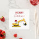 Eine niedliche Abbildung eines gelben Spielzeuggrabens mit einer Weihnachtsmannmütze und in Weihnachtsbeleuchtung dekoriert, der Weihnachtsgeschenke mit den Worten "Frohe Weihnachten" ausgräbt. Ideal für Baulaster jeden Alters. Eine ideale Weihnachtsserviette für Groß oder Klein, Mädchen oder Jungen.