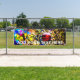 Weihnachtsbaum und rote Zierkugel mit frischem Schnee bedeckt. Farbiges Licht. Fröhliche und fröhliche Stimmung. Frohe Weihnachten und glückliches Neues Jahr. Die Grüße der Saison. Drucke und Geschenke für jeden zum Spaß und gute Laune. Panoramaprodukte und Souvenirs.
