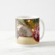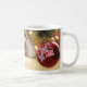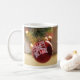 Dieser rot-weiße Weihnachtsballverzierung, der von einem unteren Zweig des Baumes hängt, war ein interessanter Brennpunkt.