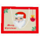 Roter Weihnachtsball mit gelbem Band und Weihnachtsmann auf hellbeige Geschenktasche. Text kann angepasst werden.