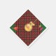 Goldener Weihnachtsball, Kiefernfüße und Kardinal-Vogel auf schwarzem, goldgelbem und rotem Schachbrett. Es gibt mehr an diesem Design als das Auge trifft.