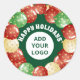 Dieser schöne Weihnachtsgeschenkaufkleber aus der Firma wird mit Ihrem Firmenlogo in einem festlich roten, grünen, goldenen Ballon auf grünem Hintergrund gefertigt. Zeitgenössische Urlaubsmomente für Ihren Kunden oder Firmenmitarbeiter.