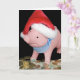 Niedliches, rosa Spargel mit Weihnachtsmannmütze aus Rot-Weiß-Furnier auf Goldmünzen für Weihnachten