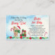 Erwarten Sie einen kleinen, süßen Jungen für die Ferien? Wir wissen, dass Sie einfach "Bearly Wait" haben, und wir sind bereit, mit dieser Baby-Dusche "Books for Baby" Buchanfrage Design zu feiern, mit einem süßen kleinen Bären mit Weihnachtsmannmütze und Bonbons. Der kleine Bär wird von einem Stapel Geschenke begleitet und zu seinen Füßen ist ein Bett von Feriengärten, um den festlichen Anlass zu ergänzen. Die Rückseite weist einen roten Hintergrund mit einem Wiederholmuster von weißen Schneeflocken auf.