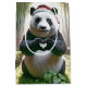Ein niedlicher Panda mit einer Weihnachtsmannmütze bildet mit seinen Pfoten eine Herzform, während er in einem üppigen Bambuswald sitzt. Text kann bearbeitet oder gelöscht werden.
