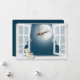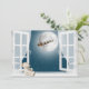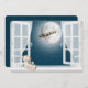 Niedlicher weißer Teddybär, der den Weihnachtsmann ansieht und Rentiere, die über den Mond fliegen. Die Hintergrundfarbe des Himmels kann geändert werden.