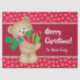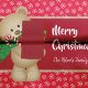 Mit diesem bezaubernden Urlaubspapier verwöhnen Sie Ihre Geschenke mit saisonalem Beifall. Auf dem Papier befindet sich ein Teddybär, der einen grünen Schal trägt und Weihnachtsgeschenke und einen Bonbonstock trägt. Der Hintergrund ist rot und weist weiße, fallende Schneeflocken auf. In der Mitte befindet sich ein dunkelrotes Band mit goldener Grenze und Platz für Ihren frohen Weihnachtsgrüß und Ihren Familiennamen.