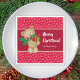 Fügen Sie Ihrem Küchentisch eine Touch saisonalen Beifall mit dieser hübschen Papierserviette hinzu. Eine Papierserviette mit einem Teddybär, der einen grünen Schal trägt und Weihnachtsgeschenke und einen Bonbonstock trägt. Der Hintergrund ist rot und weist weiße, fallende Schneeflocken auf. In der Mitte befindet sich ein dunkelrotes Band mit goldener Grenze und Platz für Ihren frohen Weihnachtsgrüß und Ihren Familiennamen. Eine tolle Ergänzung zu einer Feier!