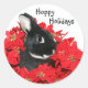 Schwarzer Hasen in roten Poinsettias Foto Weihnachtsaufkleber
