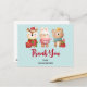 Danke Postkarte mit einer niedlichen Illustration mit einem Hasen, einem Bären und einem Reh, die alle in festlicher Kleidung gekleidet sind. Adorable und skurril.