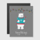 Whimsikale moderne Polarbärillustrierung mit farbigem Pullover und Schal, einer Reihe von Urlaubsleuchten und anpassbarem Text "Happy Holidays"