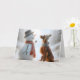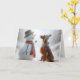 Ein Schneemann und ein irischer Setter-Hund, der Schals trägt, teilen sich einen Moment der Begleitung in einem schneebedeckten Wald