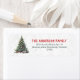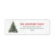 Ein geschmückter Weihnachtsbaum mit Schnee und fallenden Schneeflocken. Personalisieren Sie mit Ihrem Namen und Ihrer Adresse. Traditionelle Farben; Rot und Grün.