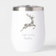 Elegant und trendig, ist dieser Weihnachtswein ein stilvolles Geschenk für sie. Das Vintage, blaue Kinnchinoiserie-Muster hinter einer niedlichen Rentier-Silhouette.