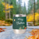 Dieser Thermalwäscher hat einen wunderschön dekorierten Weihnachtsbaum, der mit goldenen Ornamenten und funkelnden Lichtern geschmückt ist. Der Baum ist umgeben von bunten Geschenkboxen, die jeweils mit Bändern und Bögen umhüllt sind und eine fröhliche und feierliche Atmosphäre schaffen. Der Hintergrund ist ein üppiges Grün, ergänzt durch hängende goldene Bauern und Sterne, die eine Touch von Eleganz und Wärme.