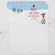 Eine niedliche und lustige Weihnachtsillustrierung: Ein Rentier mit Spuren im Schnee und einer großen Typografie Frohe Weihnachten und ein glücklicher Neujahrsbaum 2023.