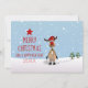 Eine niedliche und lustige Weihnachtsillustrierung: Ein Rentier mit Spuren im Schnee und einer großen Typografie Frohe Weihnachten und ein glücklicher Neujahrsbaum 2023.