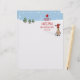 Eine niedliche und lustige Weihnachtsillustrierung: Ein Rentier mit Spuren im Schnee und einer großen Typografie Frohe Weihnachten und ein glücklicher Neujahrsbaum 2024.