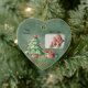 Ein fröhliches Weihnachtsherz-Ornament, das vor einem beruhigenden, schlängelgrünen Hintergrund einen skurrilen Weihnachtsbaum in Aquarellen zeigt. Delikate goldene Glitzern tanzen über die Szene und fügen eine magische Touch hinzu. Gemütliches Design lädt zu Wärme und Freude ein. Dieses Herzform-Ornament besticht durch Ihr persönliches Foto und macht es zu einem ansprechenden Sake für die Feier fröhlicher Erinnerungen in dieser Ferienzeit.