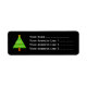 Dieses Design zeichnet sich durch eine schlichte Darstellung des Weihnachtsbaumes aus, die hauptsächlich aus Rechtecken und Quadraten besteht. Die Adresse kann personalisiert sein.