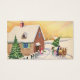 Vintage Illustration Frohe Weihnachtsfeiergestaltung mit schneebedeckter Straße während der Wintersaison. Eine Familie bringt Zuhause einen frisch geschnittenen Kiefer- oder Tannenbaum in einen gezeichnet Schlitten.