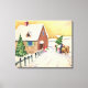 Weihnachtsbaum auf einer schneebedeckten Winterstr Leinwanddruck