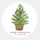 Happy Holidays | Dieser individuell gestaltbare Weihnachtsaufkleber enthält einen Weihnachtsbaum mit roten Ornamenten auf einem Korbweidekorb. Personalisieren Sie Ihre persönlichen Daten, indem Sie Ihre eigenen Daten hinzufügen. Dies wird perfekt als Einladung oder Siegel mit der Urlaubskarte. Matching-Elemente sind verfügbar.