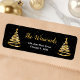 Dieses elegante und schicke Retourenlabel besticht durch einen goldenen Weihnachtsbaum mit Sternopper. Der Text kombiniert handgeschriebene Skripte mit modernen serifenlosen Schriftart für ein elegantes und raffiniertes Aussehen. Der fallende Schnee, Schneeflocken und Glitzern geben eine festliche und magische Touch. Das ist perfekt für Weihnachten und die Ferienzeit.