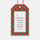 Geschenke Tags mit einem lustigen roten und grünen Weihnachtsbaummuster auf der Vorderseite mit einer Nachricht auf der Rückseite. Ich habe eine Lücke verlassen, durch die Sie den Namen des Empfängers handschreiben können. Um den Text zu ändern oder zu löschen, klicken Sie auf die Schaltfläche Personalisieren. Dieses Design enthält A.I.