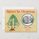 Genießen Sie die erste Weihnachtsfoto-Karte dieses kleinen Babys. Es ist mit einem grünen und roten weihnachtlichen Baum geschmückt, der mit einem Stern überragt ist. Außerdem ist es personalisiert mit dem Bild Ihres süßen Engels, seinem Namen und seinem Geburtsdatum. Auf der Rückseite können Sie Ihre eigene Weihnachtsgrüße und personalisierte Absenderliste hinzufügen. Es ist die perfekte Karte für das 1. Weihnachtsfest des Babys!